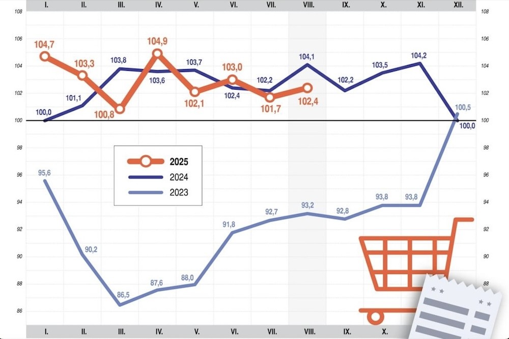 A Központi Statisztikai Hivatal (KSH) adatai szerint 2025 augusztusában a kiskereskedelmi forgalom volumene 2,4 százalékkal haladta meg az előző év azonos időszakát, míg az előző hónaphoz képest 0,8 százalékos növekedést mértek. Az adatok azt mutatják, hogy a kiskereskedelmi szektor továbbra is mérsékelt, de stabil bővülést mutat Magyarországon.
