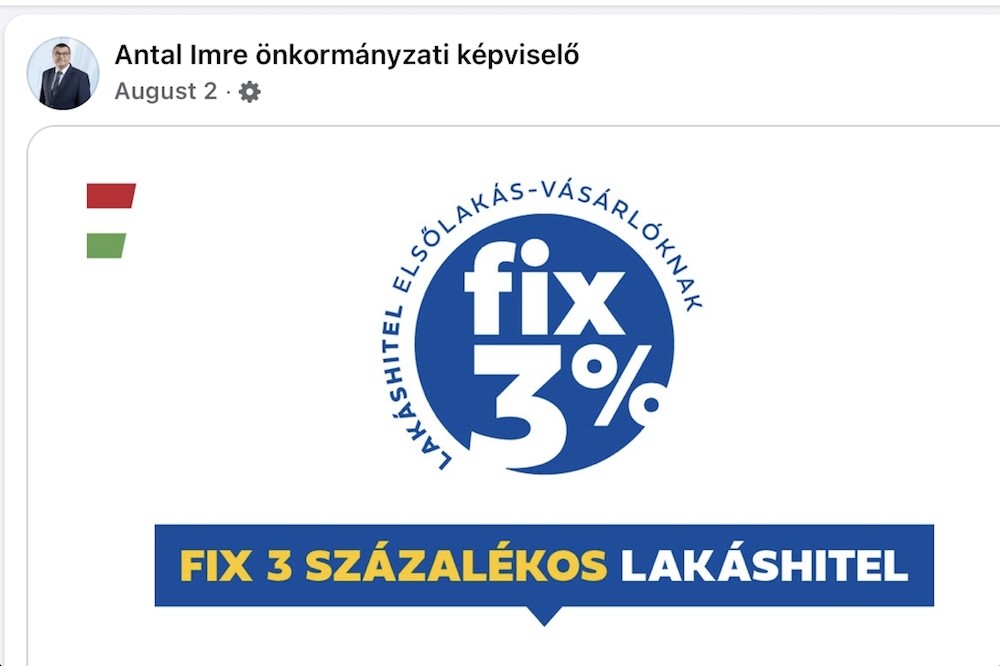Augusztus óta folyik megállás nélkül minden létező kormányzati sajtótermékből, hogy a 3%-os fix kamatozású Otthon Start Program bizony soha nem látott módon könnyíti meg az első saját ingatlan megszerzését. Az egyik fő szlogen, hogy el kell felejteni a bérleményeket, és tulajdont kell szerezni, mert az a jövő, az a jobb döntés, és különben is. Augusztus 2-án, maga Antal Imre is megosztotta ezt a kötelező reklámot, és lájkolta a kormányzati propaganda egyik új fegyverét, a csodás hitelprogramot.